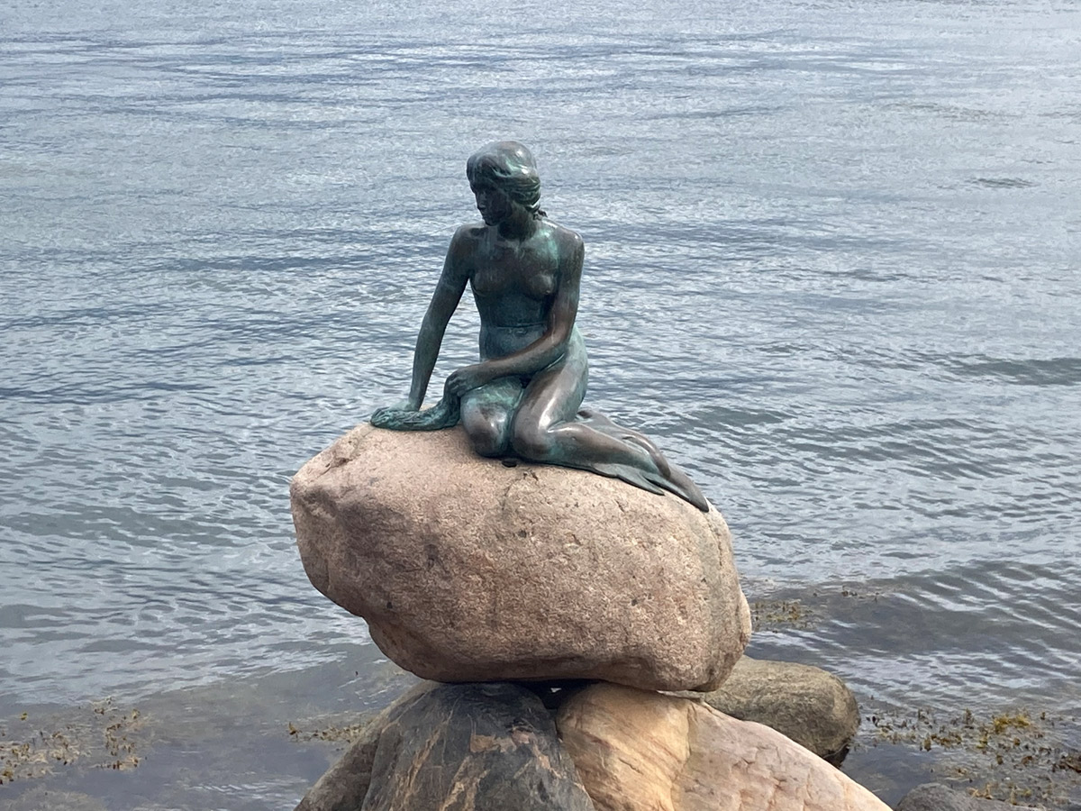 Dann ging es mit der Hafenfähre auf zur Kleinen Meerjungfrau, die auf einem Findling an der Uferpromenade Langelinie sitzt. Durch die Traube an Menschen um die Bronzefigur herum erst gar nicht zu sehen, war sie bei näherer Betrachtung dann doch nicht so klein wie gedacht.