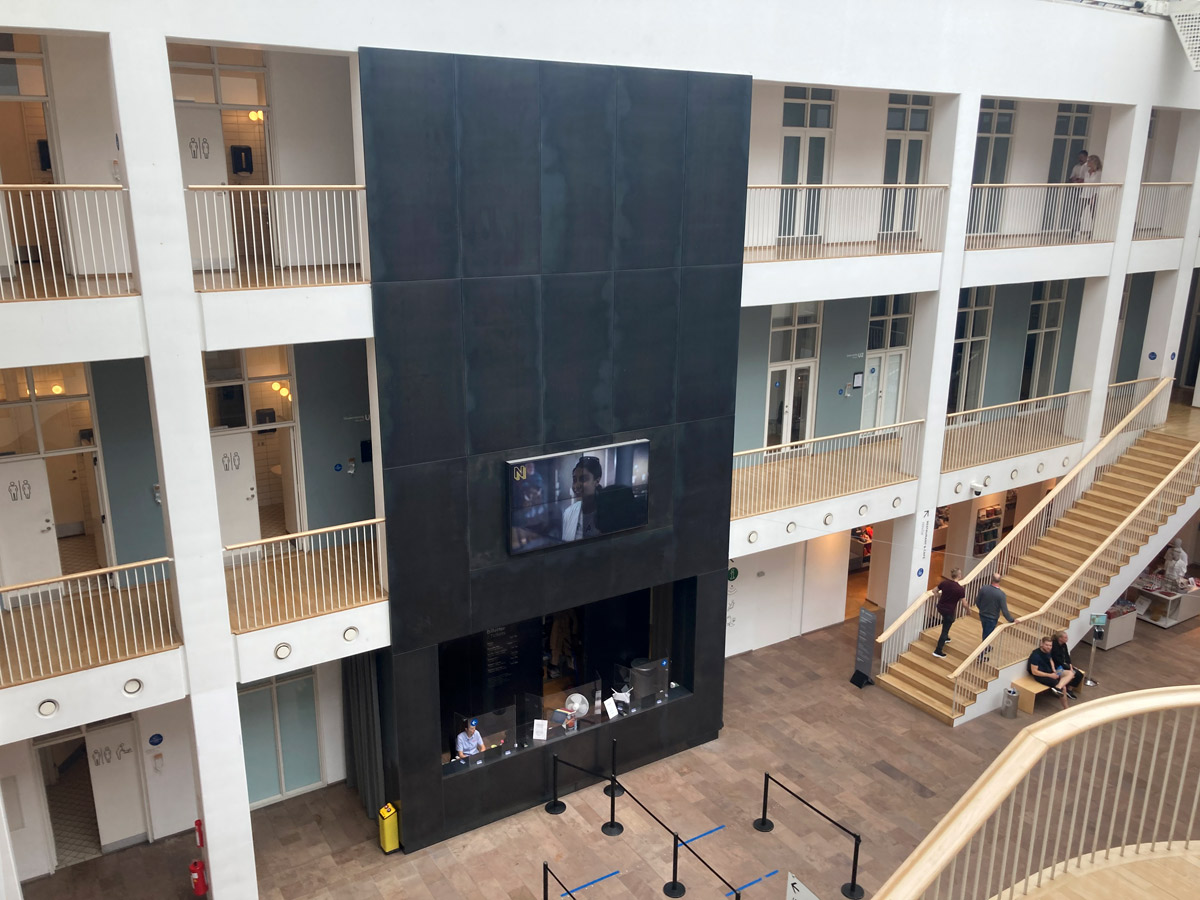 Als wir durch den Park rund um das Kastell hindurch zum Designmuseum Danmark gelaufen waren, mussten wir leider feststellen, dass es wegen Renovierung bis 2022 geschlossen ist. Schade, wieder ein Museum, das wir nicht besuchen konnten! An der Frederiks Kirke und Schloss Amalienborg vorbei – die dänische Flagge war gehisst, das Zeichen dafür, dass sich die Königin dort aufhält –, also zurück zum Nyhavn auf ein Eis und dann ab in die Metro.